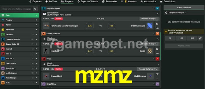 O mzmz oferece uma grande seleção de opções de apostas em e-sports com probabilidades competitivas